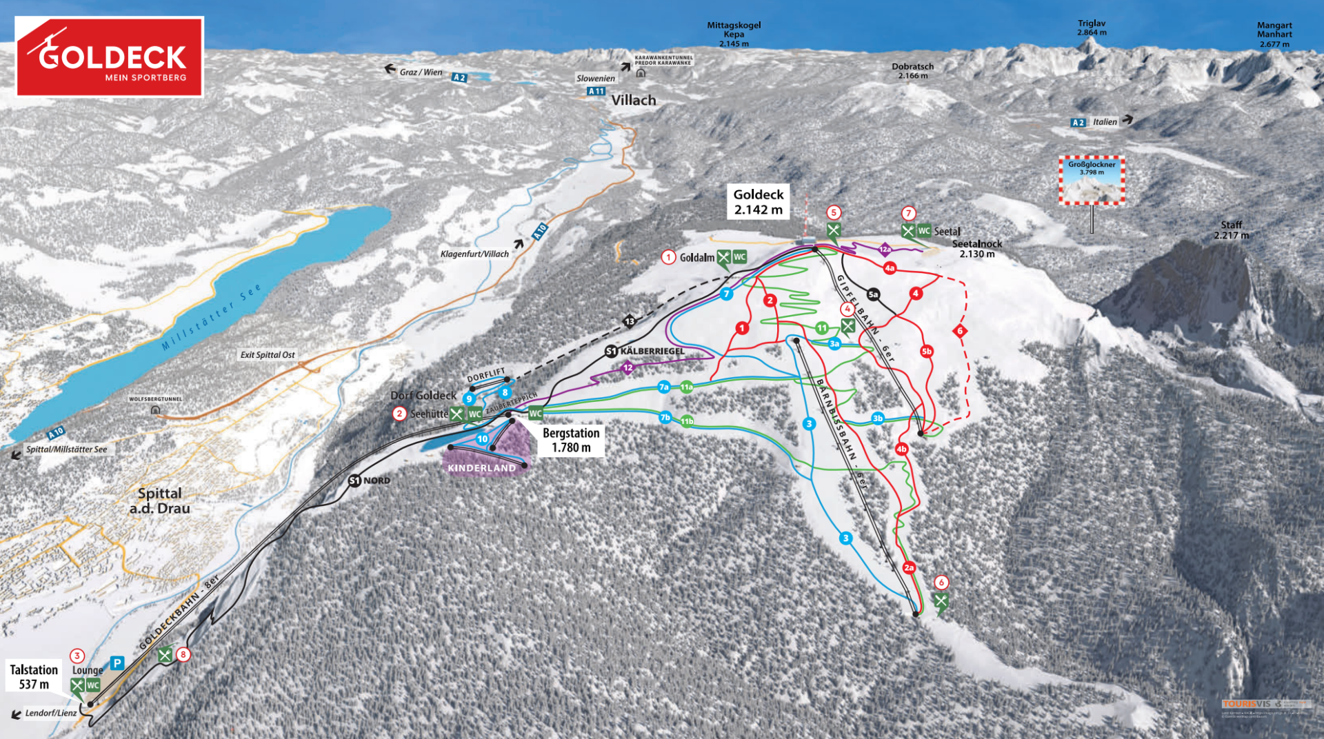Der Sportberg Goldeck ist Ihre Bühne fürs Winterabenteuer: sonnige, bestens präparierte Pisten für Genießer, sportliche Steilhänge für Könner und die legendäre S1 mit 1.605 Höhenmetern. Ob Skifahren, Snowboarden, Skitouren oder Winterwandern – mit Panoramablick auf den Millstätter See starten Sie direkt in Ihren perfekten Skitag. Jetzt Pistenplan, Webcams & Tickets checken und den Winter am Goldeck erleben.